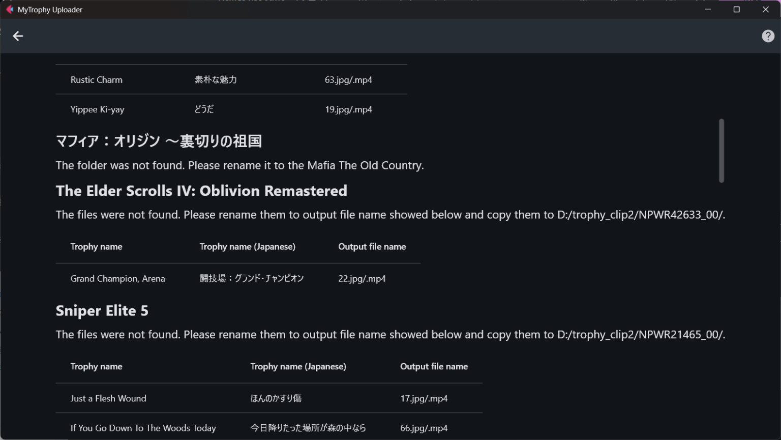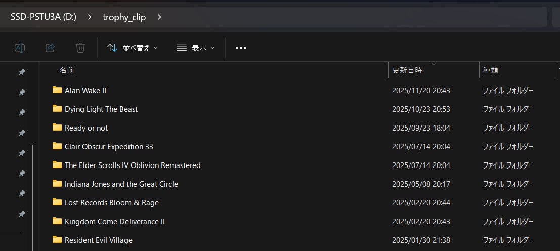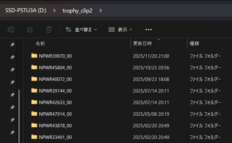 As shown below, linked files are saved in game-related folders such as ‘NPWR39970_00’ within the output folder ‘trophy_clips2’.