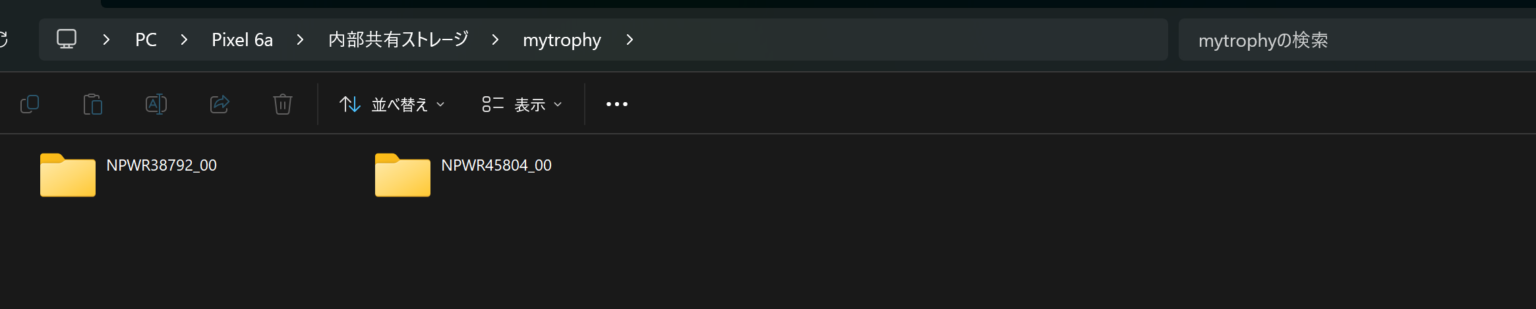 After uploading, copy the folders from the output folder to the folder specified by the save folder name on your mobile device. As shown below, ‘NPWR45804_00’ and ‘NPWR38792_00’ are copied into the ‘mytrophy’ folder. Note that the save folder is located in the root directory of your device.